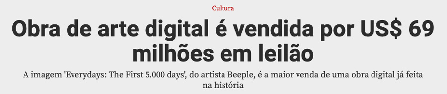 E se tornou a maior venda de uma obra digital já feita em toda a História.