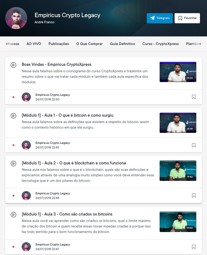 # Curso CryptoExpress, com 4 módulos e 18 aulas para entender o mercado de moedas digitais;