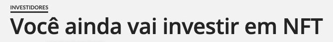 É claro que não estou incentivando ninguém a largar o emprego para investir em NFT…