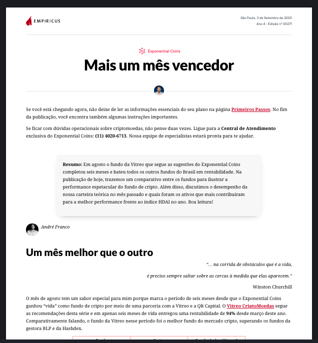 O André faz parte do nosso time de análise e comanda todo o departamento de inteligência e pesquisa de Blockchain da Empiricus.