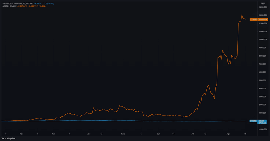 Fala pra mim, quem fez mais dinheiro? Quem investiu em Bitcoin ou quem comprou AXS?